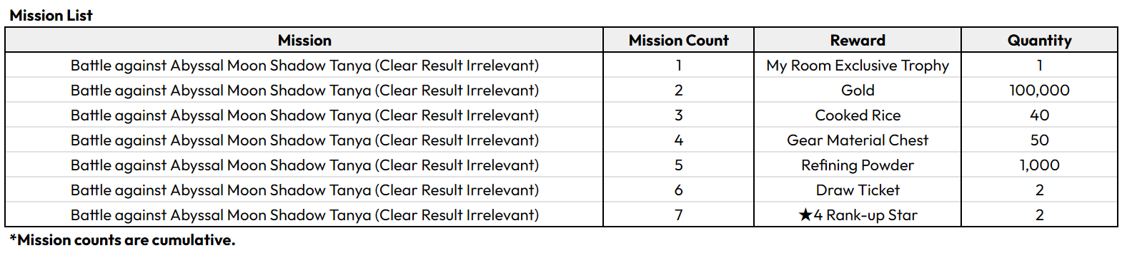 2. Abyssal Moon Shadow Tanya (Dark) Boosting Mission Event