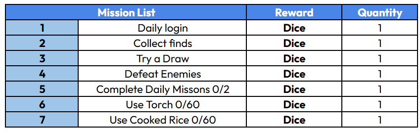 Roll the dice to move forward the number of spaces shown, and you’ll get a reward based on where you land. You can also play the game automatically. When autoplay is on, the game runs 3 times faster and will stop if you run out of dice. You can play the game as many times as you like, and each completion will give you a reward.