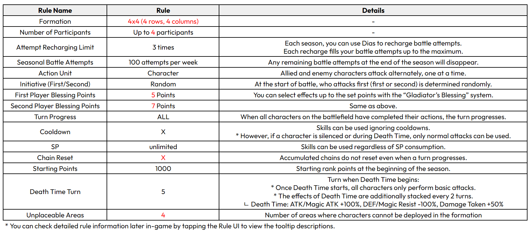 The rules of the Golden Colosseum are updated every two weeks. Here are the current rules for this season: