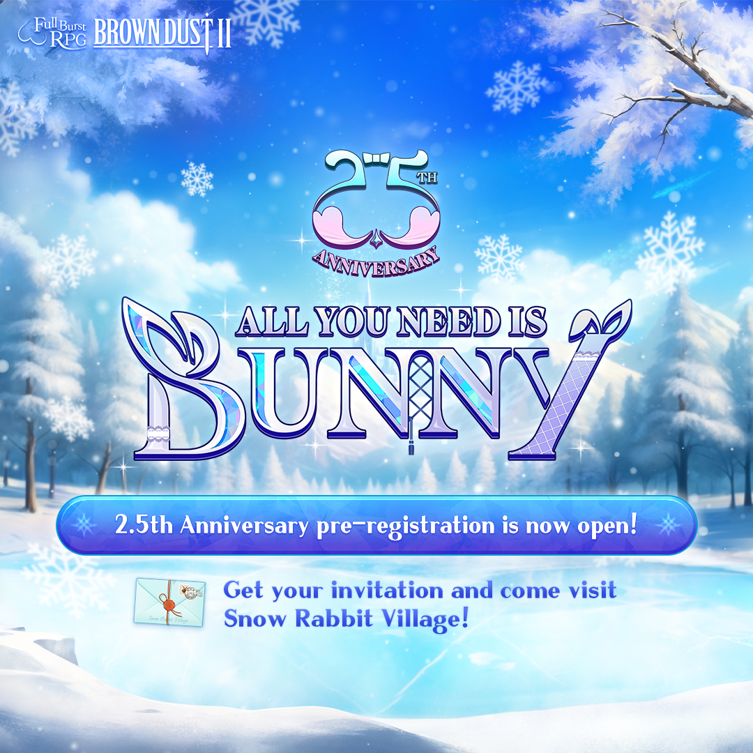 Snow Rabbit Village is now available in BrownDust2! ❄️🐇 Don’t miss out on the latest news and events – check out our pre-registration page! Meet adorable snow bunnies and their beautiful, icy queen! 📣🔔🐇👸
