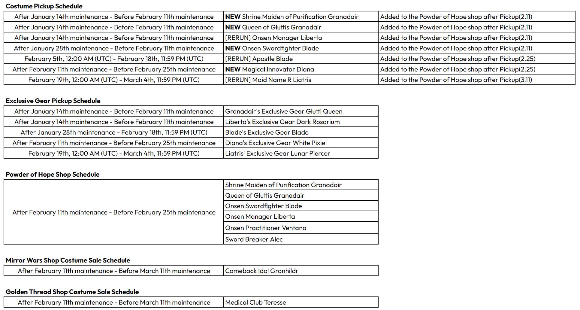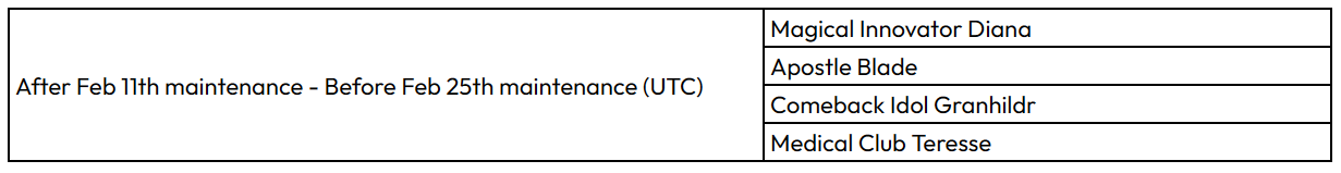 2) White Pixie: After February 11th maintenance – Before February 25th maintenance. (UTC)