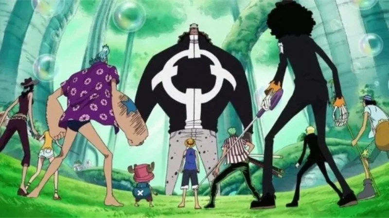 During the Arlong Park story arc, Nami reaches her limit and desperately asks Luffy for assistance. He places his hat on her head, and together with Zoro, Sanji, and Usopp, they head towards Arlong Park – marked by the iconic title card reveal. This clearly signals the crew’s plan of action. The next episode immediately jumps into the Straw Hats battling and destroying Arlong’s forces and base.