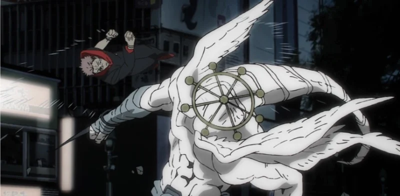 This fight in ‘Jujutsu Kaisen’ takes place within a special domain that creates a series of unavoidable, illness-based attacks linked to coffins and burial. Instead of simply blocking, the characters must complete a specific sequence of steps to survive. Mei Mei carefully plans her attacks and makes a binding vow to ensure a successful hit within these rules. The two fighters try to overcome this predetermined sequence and change the outcome.