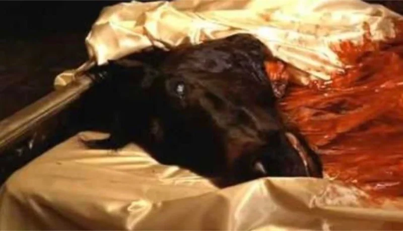 To get genuine responses from the actors, the film crew positioned the head prop just before each take and maintained strict control over the set. The realistic effect depended on makeup blood, precise positioning, and fast adjustments between takes, because the prop couldn’t withstand the heat of the lights for very long. The scene’s impact came from clever physical setup and not from special camera techniques.
