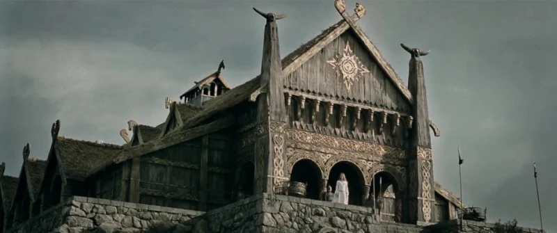 The filmmakers built the complete hilltop city of Edoras on Mount Sunday in New Zealand, featuring the Golden Hall and its distinctive horse carvings. They created access roads and securely fastened every element of the set to endure the challenging mountain conditions.