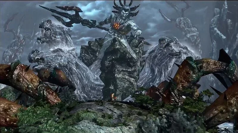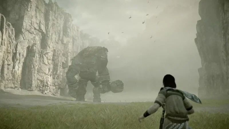Team Ico begins in a peaceful, open area filled with the sounds of horses and flying birds. A gentle tremor in the ground draws your eye upward to a colossal figure – a giant covered in stone and moss. Surprisingly, the giant isn’t hostile, simply observing you. Its immense size and the slow, deliberate introduction of the scene suggest you’ll need to carefully climb it, not fight it.