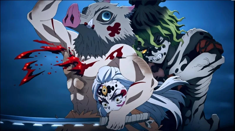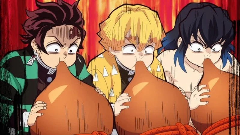 Following their difficult journey up the mountain, Tanjiro, Zenitsu, and Inosuke are recovering at the Butterfly Mansion. They’re training with demanding exercises like a fast-paced game of tag and balancing cups, which help them improve their breathing control and agility. The staff, Kiyo, Naho, and Sumi, push them hard to maintain complete focus even while moving. These drills focus on proper breathing, good posture, and strong core muscles to build stamina. These sessions are subtly preparing them for advanced breathing techniques they’ll need in future battles.