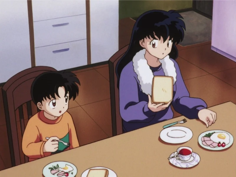 When Kagome travels back in time through the shrine well, Sota takes care of things at home and offers her support. Their conversations help Kagome adjust to life in the feudal era before she returns. The scenes at the shrine show how the family balances keeping Kagome’s travels a secret with being there for her. The consistent use of sunrise imagery in the Higurashi home creates a warm and reassuring atmosphere, making Kagome’s returns feel safe and comforting.