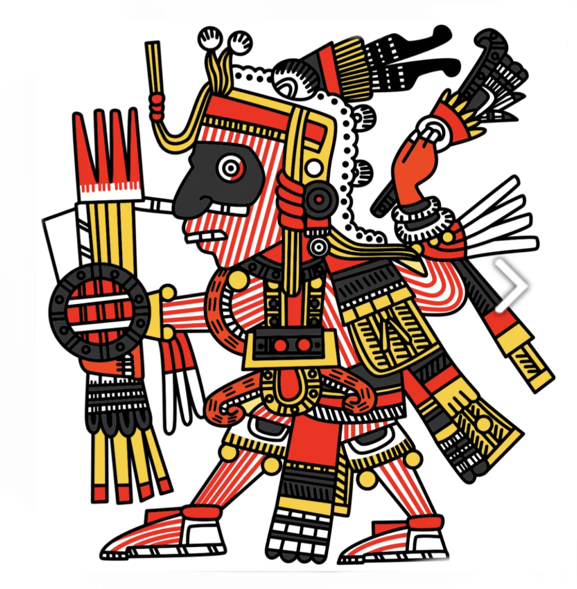 Huitzilopochtli, whose name means “Hummingbird on the Left,” was the main god of war for the Mexica people and was also connected to the sun’s journey across the sky. The most important temple in their capital city was dedicated to him, and as the empire grew, it reflected the stories of his battles against the moon and stars. Rituals involving capturing warriors, military organizations, and grand celebrations all worked together to honor him and ensure the sun rose each day. He was often depicted with a blue face, hummingbird feathers, and a fiery serpent, symbolizing the power that drove their empire.