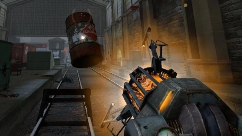 When the game reaches its final stages, the Gravity Gun can grab and launch both living enemies and heavy objects with deadly force. The way these projectiles work calculates damage based on their weight and how fast they’re moving, turning thrown soldiers and energy cores into powerful attacks. These projectiles also affect the surroundings, breaking glass, setting off explosions, or destroying barricades.