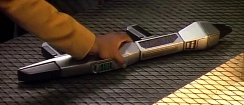 The Type-3 phaser rifle is a weapon that uses focused energy, and it can be set to stun, burn, or completely destroy a target. In Star Trek: The Next Generation, security teams use the rifle when their normal pistols aren’t powerful enough against tough or protected enemies. Officers can change the power and size of the beam using controls on the weapon itself. The show presents these adjustments as a normal part of how things are done, consistent with the style of Paramount’s first run syndication era.