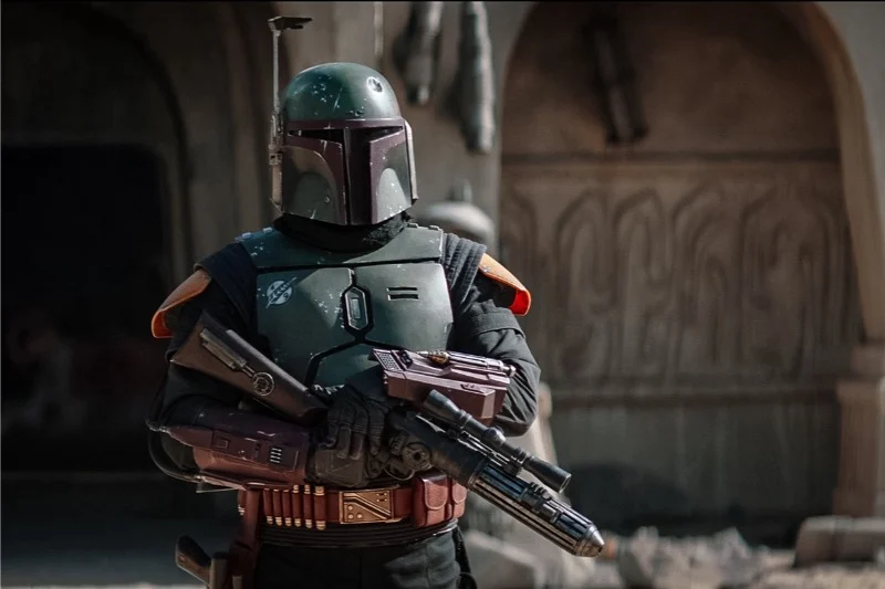 The EE-3 is a compact yet powerful blaster carbine often seen with bounty hunters. In ‘The Book of Boba Fett’, it’s used in short, rapid shots during chases and quick-draw moments. The blaster’s design, which looks like it can be easily modified, suggests it’s customized for various missions. This combination of appearance and practicality fits well with the show’s episodic format on Disney Plus.