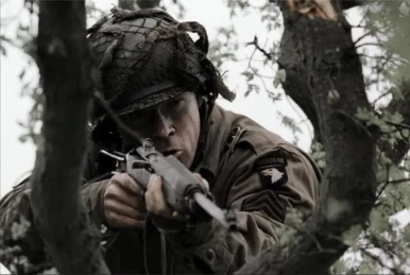 The MG42 is a general-purpose machine gun that fires using recoil, and it’s known for its incredibly fast firing rate and ability to quickly swap out barrels. In the series Band of Brothers, its distinctive sound immediately reveals enemy defensive locations that American paratroopers need to avoid, and the show effectively illustrates the danger of being caught in suppressive fire from multiple, overlapping positions. The way the presentation connects the equipment to the military tactics enhances the storytelling of the HBO miniseries.