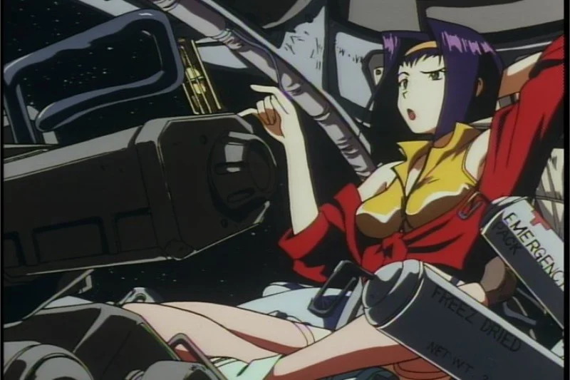 The character No. 10 combines a vintage, futuristic style with functional design. In ‘Cowboy Bebop,’ Faye Valentine’s yellow suit and red jacket are animated with detailed panels that look natural whether she’s relaxing or running. Her headband and holster draw attention back to her face when she’s speaking. The shiny textures and bright colors make her pop, even in dark environments like bars and spaceship cargo areas.