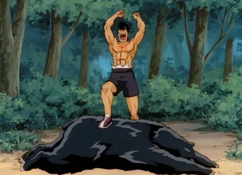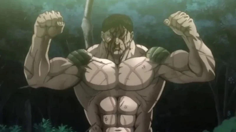 In the anime ‘Baki’, Hanayama is a fearsome fighter known for his incredible grip strength and unwavering determination. He doesn’t flinch from pain, quickly closes in on opponents, and makes close-quarters combat extremely difficult for anyone he grabs. The animation emphasizes the brutal force of his attacks, highlighting his exceptional toughness. Hanayama’s fearsome reputation isn’t based on any special abilities, but on the resilience he built fighting in the yakuza underworld.