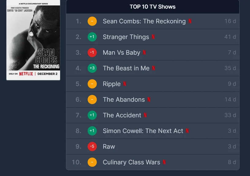 Despite some potential inaccuracies in the reported viewership figures, the Netflix docuseries about Sean Combs has been a hit. “Sean Combs: The Reckoning,” which launched on December 2nd, garnered 21.8 million views in its first six days, as reported by Variety. This is especially noteworthy considering Netflix only announced the series a week beforehand, and Diddy’s legal team had challenged the project.