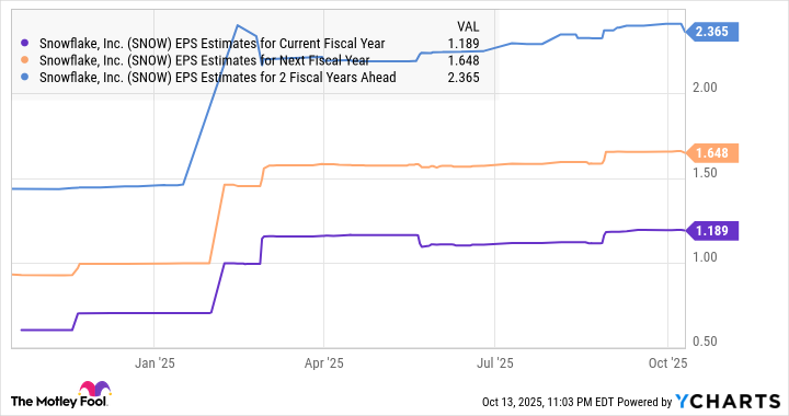Snowflake’s remaining performance obligations (RPO) have surged 33% to $6.9 billion, a figure that hints at a future where the company’s non-GAAP earnings may nearly double. With an addressable market projected to reach $355 billion by 2029, Snowflake’s prospects are as rosy as a particularly well-blended claret. Analysts, ever the optimists, predict earnings growth of 39% in fiscal 2027 and 44% in 2028-a performance that would make even the most jaded Wall Street pundit raise an eyebrow.