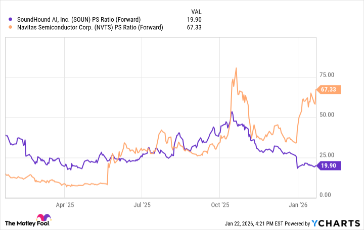 As the chart illustrates, Navitas currently commands a significantly higher price-to-sales ratio than SoundHound. This suggests that the market has already priced in a considerable degree of optimism regarding the company’s prospects. Given its declining sales and current lack of profitability, this valuation appears, shall we say, ambitious. Perhaps, in time, Navitas will emerge as a compelling AI investment. But for the present, a degree of caution is advisable.