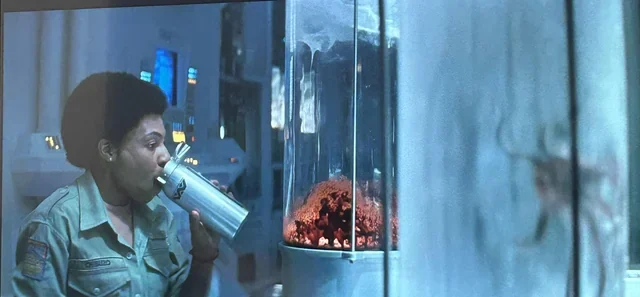 When filming the lab scenes, the facehugger props and their connecting tubes weren’t always positioned exactly the same way in every shot. This was due to unavoidable issues like movement when setting up each take, reflections in the glass tanks, and the need to refill those tanks to keep everything visible. The filmmakers focused on getting clear close-up shots of the creatures and bubbles, and wider shots that showed all the equipment. Because of these practical challenges, the placement of jars, hoses, and clamps would often shift slightly between shots.