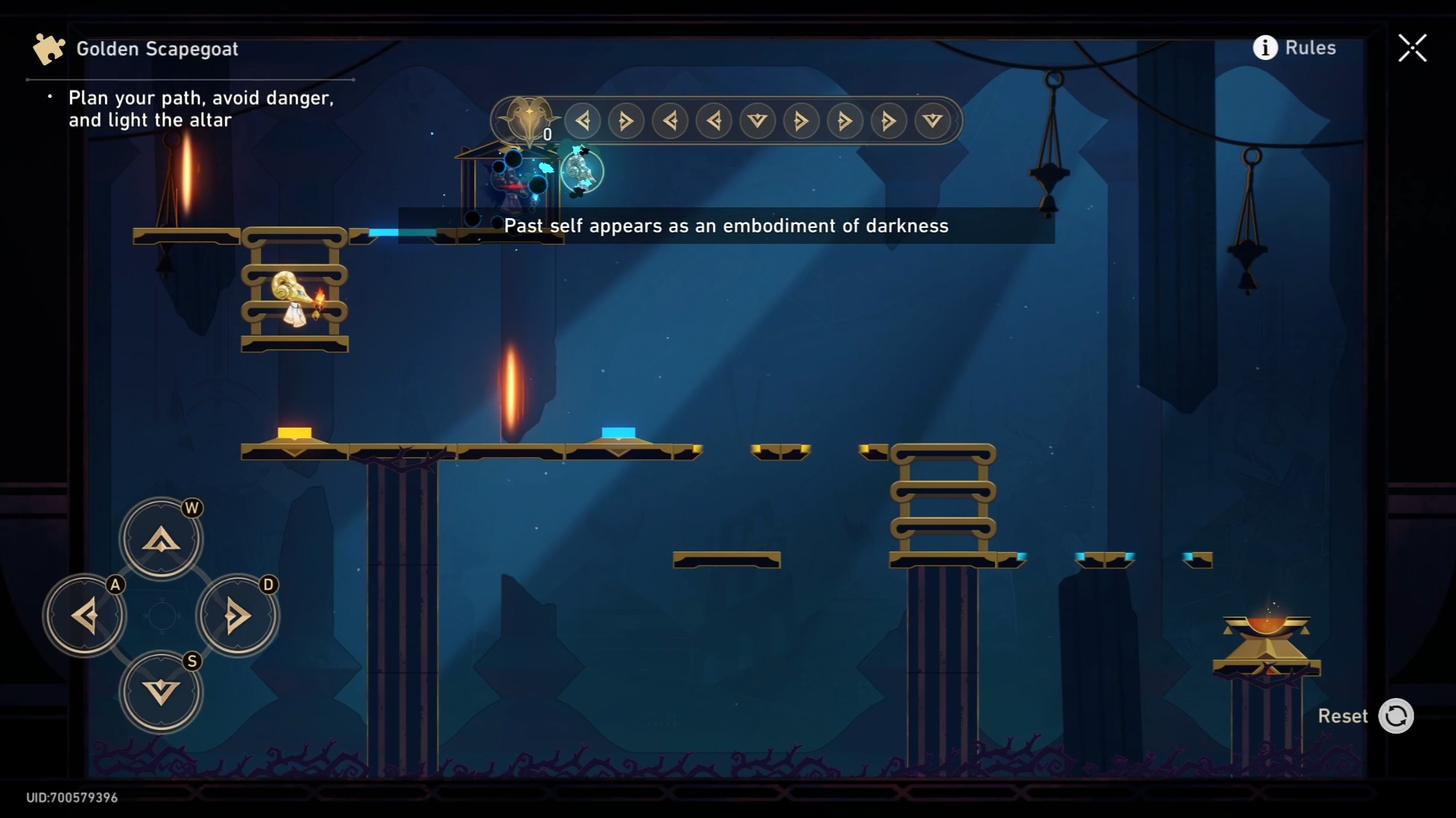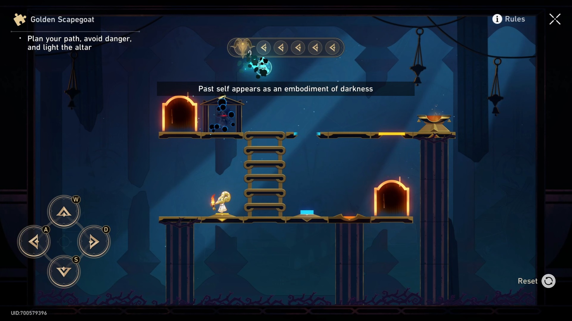 The last puzzle is straightforward: you just need to repeatedly jump towards the center. Usually, if your shadow gets stuck in a teleportation loop, the game ends, but that rule doesn’t apply here – your shadow will simply disappear.