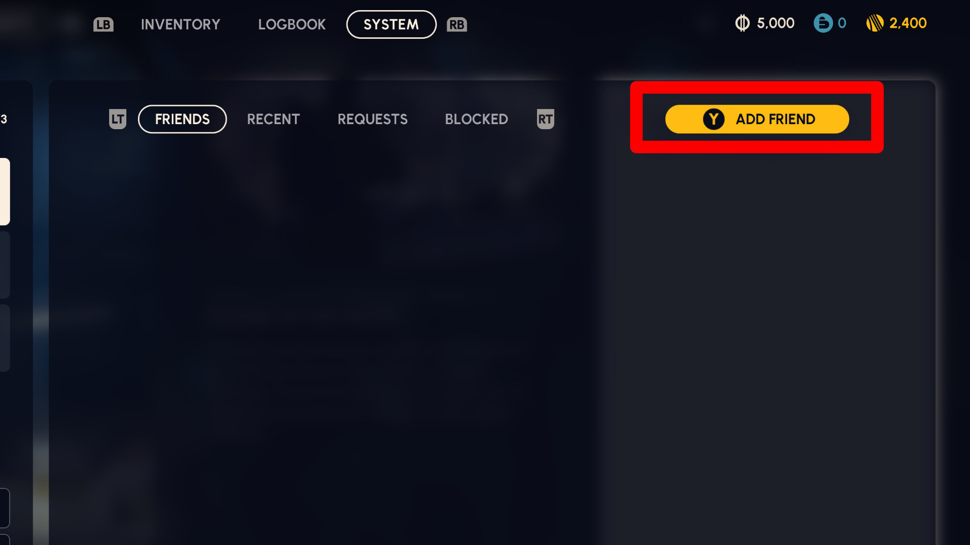After you get your friend’s Embark username, go to the social panel. You can find this by pressing the options or start button on the main screen, then select ‘Add Friend’.