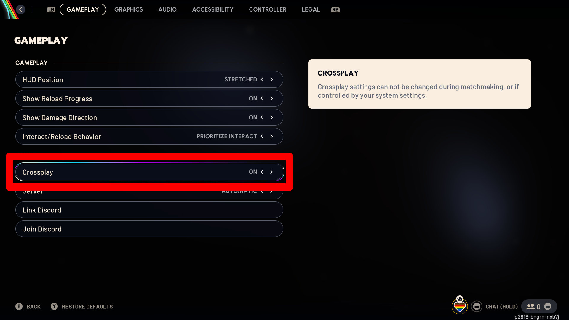 To enable or disable crossplay, first open the game menu and select “Settings”. Then, go to the “Gameplay” tab and find the Crossplay option. You can toggle it on or off from there. Keep in mind that you can only change this setting when you’re not actively looking for a match or playing a game.