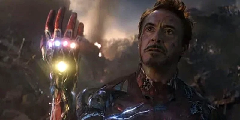 The Stark gauntlet switches hands mid sequence