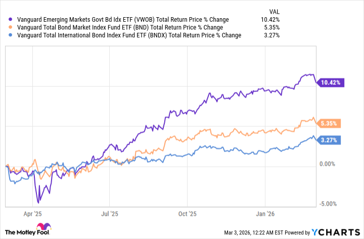 It is not merely a question of higher yields – though yields, let us concede, are a persuasive siren song. It is a matter of perspective, of recognizing that the world does not revolve around the Dow Jones. The VWOB, a portfolio of governmental promises from nations still finding their footing, has, in the recent past, demonstrated a rather fetching outperformance against both the BNDX and the ubiquitous Vanguard Total Bond Market ETF (BND 0.14%). A fleeting triumph, perhaps? Or a harbinger of a more profound recalibration of global financial currents?