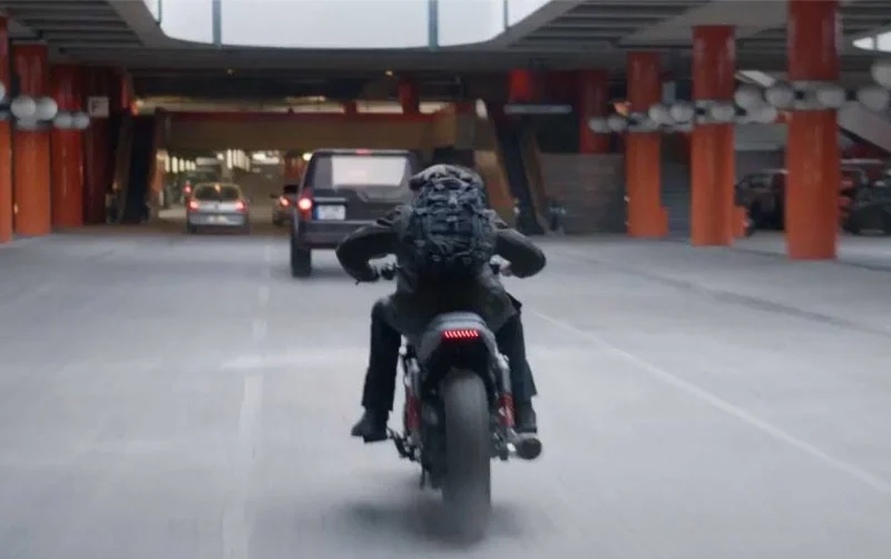 While escaping the mall, Steve and Natasha run through the main hallway after the scene at the Apple store. Pay attention to the gray backpack – its strap and position on Steve’s shoulder subtly change between shots, even though nothing happens on screen to explain the adjustments.