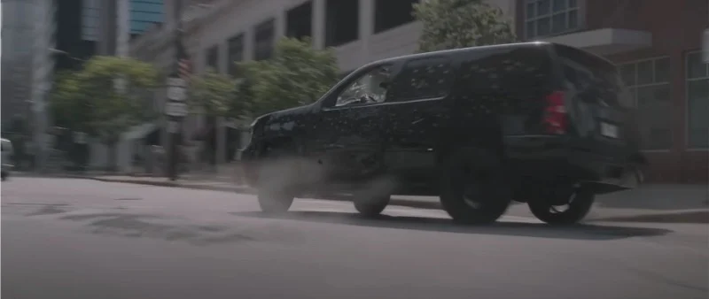 During the attack on the bridge, Steve’s team is immediately caught in a hail of gunfire, and their vehicles are quickly damaged. Notice the front windshield of the main SUV – the camera switches between wide shots of the exterior and close-ups inside, clearly showing the cracks spreading across the glass in just a few seconds.