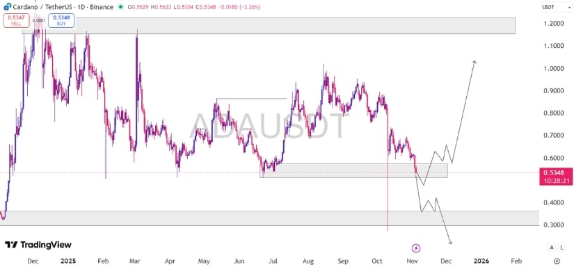 Analyst RISK (fitting name) reckons ADA’s consolidating around $0.5348, which sounds suspiciously like “doing absolutely nothing.” Two possible outcomes: either it dips briefly to $0.48-$0.50 (because why not?) or it miraculously rises if buyers suddenly remember they exist.