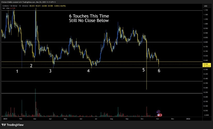 Apparently, ADA’s repeating a pattern from its last big rally – testing the “golden pocket” (whatever that is) six times without collapsing. This either means strong demand or that traders have the memory of goldfish.
