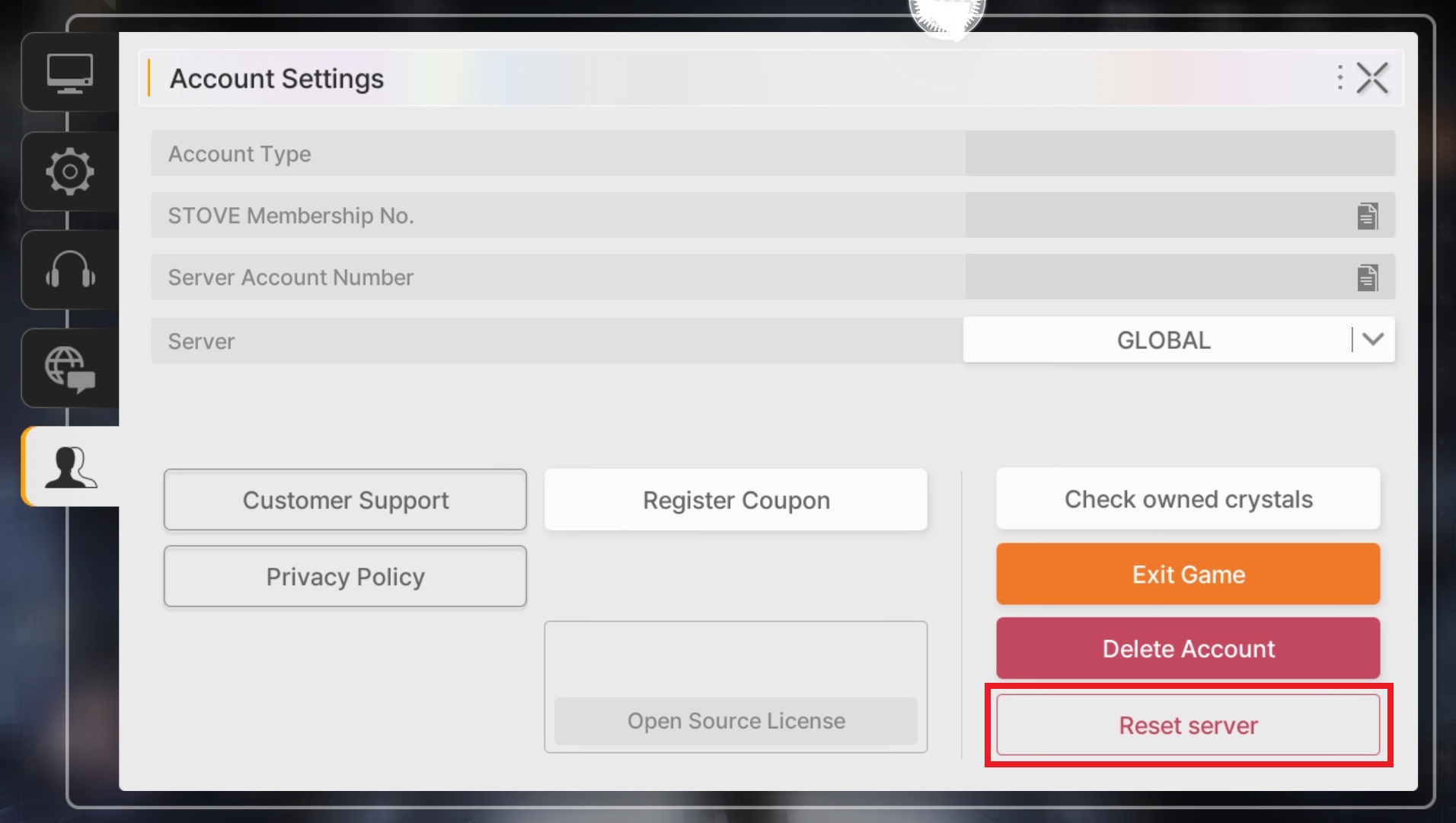 - Click the “Reset server” button and then enter your username to confirm.