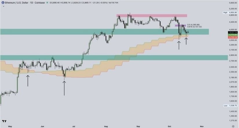 Ethereum has bounced off its Weekly Bull Market Support Band (fancy name, right?), and from those high-timeframe support zones between $3,200 and $3,600, which historically are the places where reversals have happened. Trader Luca (@CrypticTrades_), who has nothing better to do than obsess over these charts, said, “As long as ETH holds above these supports, a bullish trend is likely, though that pesky resistance around $4,200-$4,800 may make things… tricky.” Oh Luca, always the optimist. 😆
