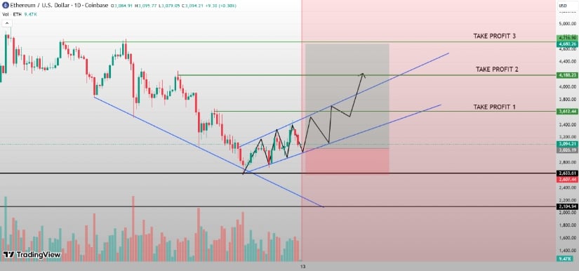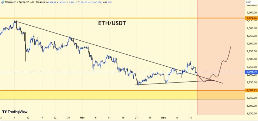 Ethereum, like a noble steed, gallops within an ascending channel, its higher lows a testament to resilience 🐎. Yet, the bearish flag on the 12-hour chart looms like a shadow, a warning that failure to hold $3,100 may send it hurtling toward $2,400 🧨.