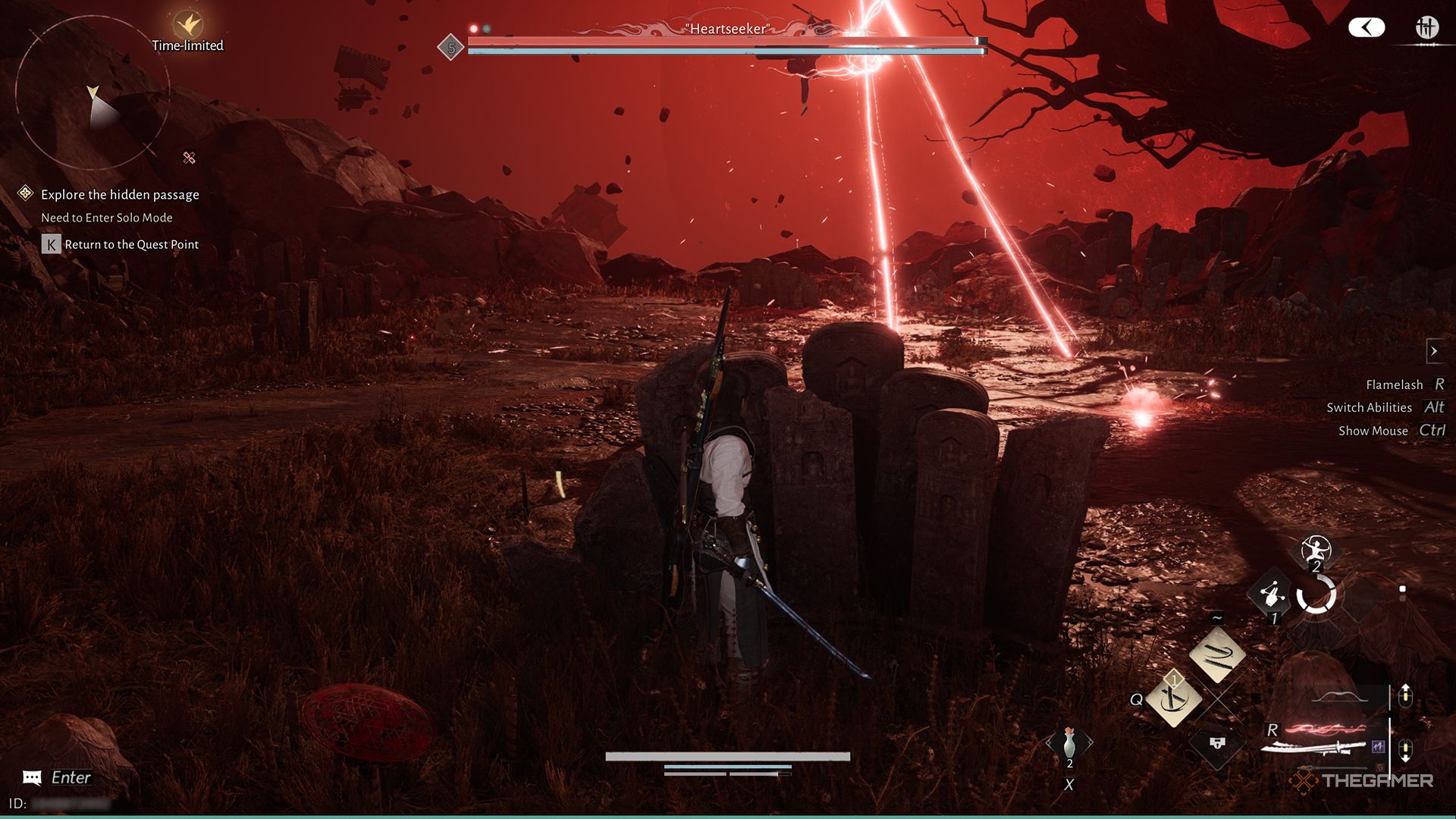 Heartseeker regularly creates three red orbs that fly towards you. You can dodge them, but it’s more effective to use Meridian Touch to destroy the orbs and briefly make Heartseeker vulnerable, allowing you to deal significant damage.