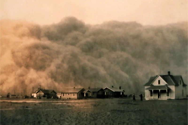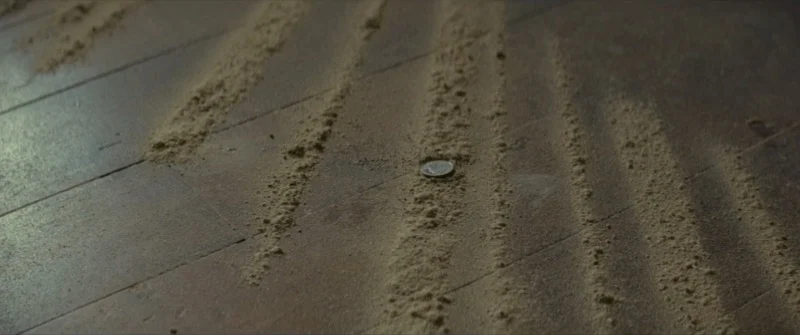 The baseball game is interrupted by a dust storm, and afterward, the farm is left with neat, striped patterns of dust. Real dust storms create chaotic swirls that settle randomly around objects. These consistent stripes on shelves and floors aren’t realistic for how dust usually behaves indoors – the pattern is likely for the story, not based on how storms actually work.