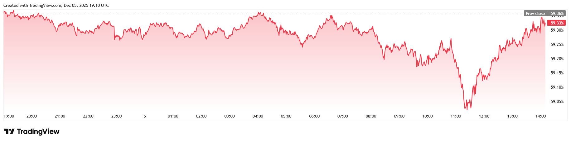 Daily trading volume was down 2.04% at $64.18 billion and market capitalization eased to $1.77 trillion. Bitcoin dominance edged lower, shedding 0.07% to reach 59.33%.