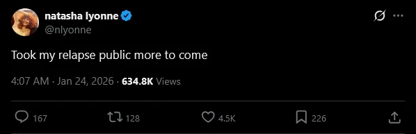 On Friday night, she announced she had experienced a relapse and indicated she would share more about it, wanting to be open about her struggles. Later that day, she posted a supportive message to others facing similar challenges, reminding them that recovery isn’t always easy or direct.
