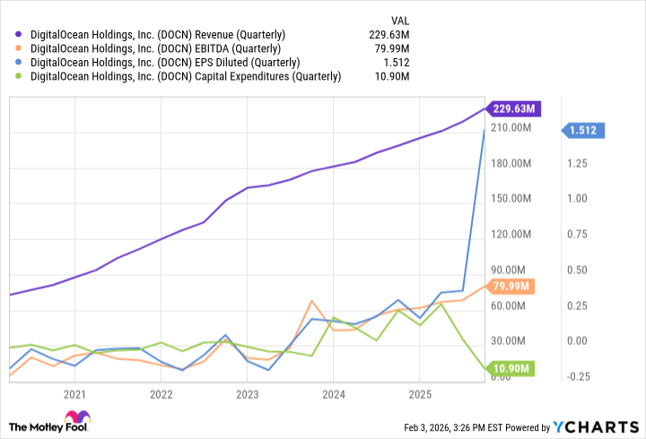 DigitalOcean won’t grow as fast as Nebius. That’s just a fact. Nebius is starting from zero. Easy to show growth when you’re starting from zero. DigitalOcean has been around since 2012, building things slowly, steadily. They’re on pace to report nearly $900 million in revenue for 2025. Respectable.