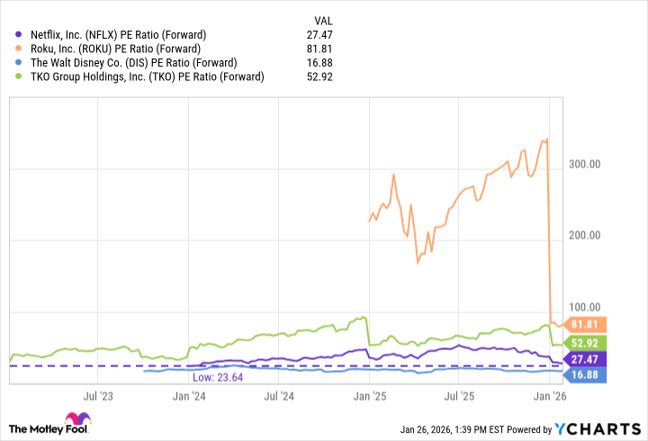 Now, a forward price-to-earnings multiple of 27 might not seem like a steal at first glance. But consider this: Netflix is tradin’ at a considerable discount compared to some of these less profitable streamlin’ companies and entertainment conglomerates.