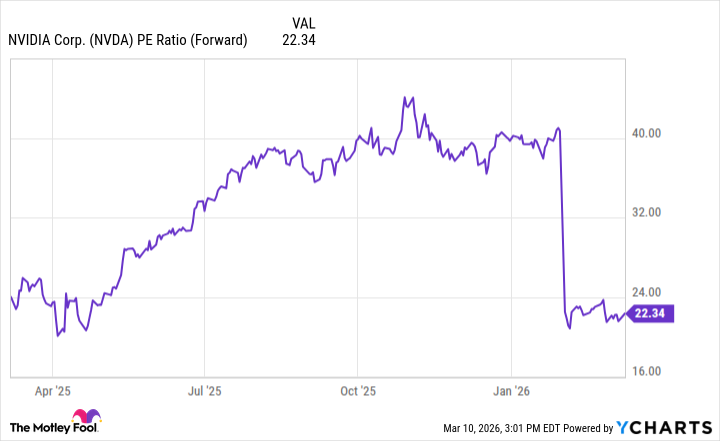 And now, after the market’s momentary pique, the opportunity to acquire Nvidia stock has presented itself. The forward price-to-earnings ratio has dropped significantly. With a multiple of about 22, Nvidia shares are at an attractive valuation not seen since the tariff announcements of last April caused a temporary market tremor.