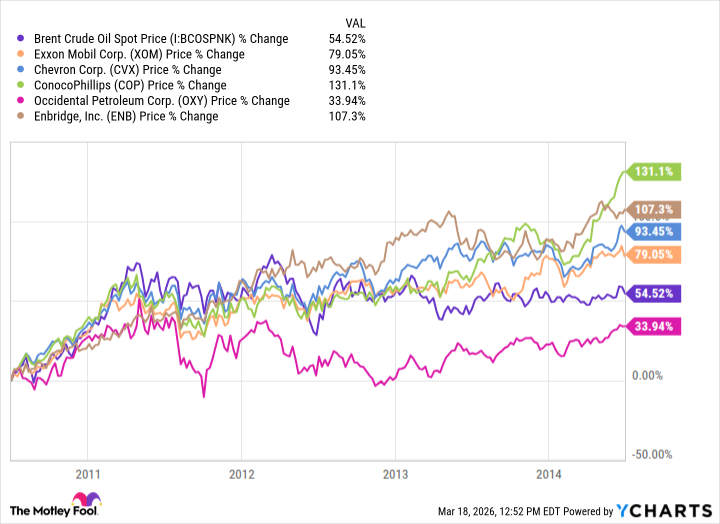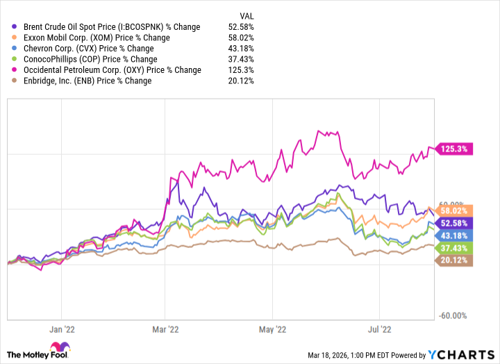 Remember 2008? The world was imploding, everyone was panicking, and oil was, naturally, soaring. It hit $147 a barrel. The sheer audacity. Most oil stocks did okay, I suppose. A polite little bump. But some… excelled. Occidental Petroleum (OXY +2.06%) actually delivered. Over 50% return. Good for them. ExxonMobil (XOM +0.40%)? A pathetic 3%. Honestly, you’d think with all that branding and lobbying, they could manage a slightly more impressive showing. Enbridge (ENB +1.47%) did alright, as usual. Pipelines are always a safe bet, aren’t they? A bit…boring, but reliably profitable. Like a sensible cardigan. The rest? Lost value. Which, frankly, is how it should be. Someone has to pay for all this, and it’s rarely the people at the top.