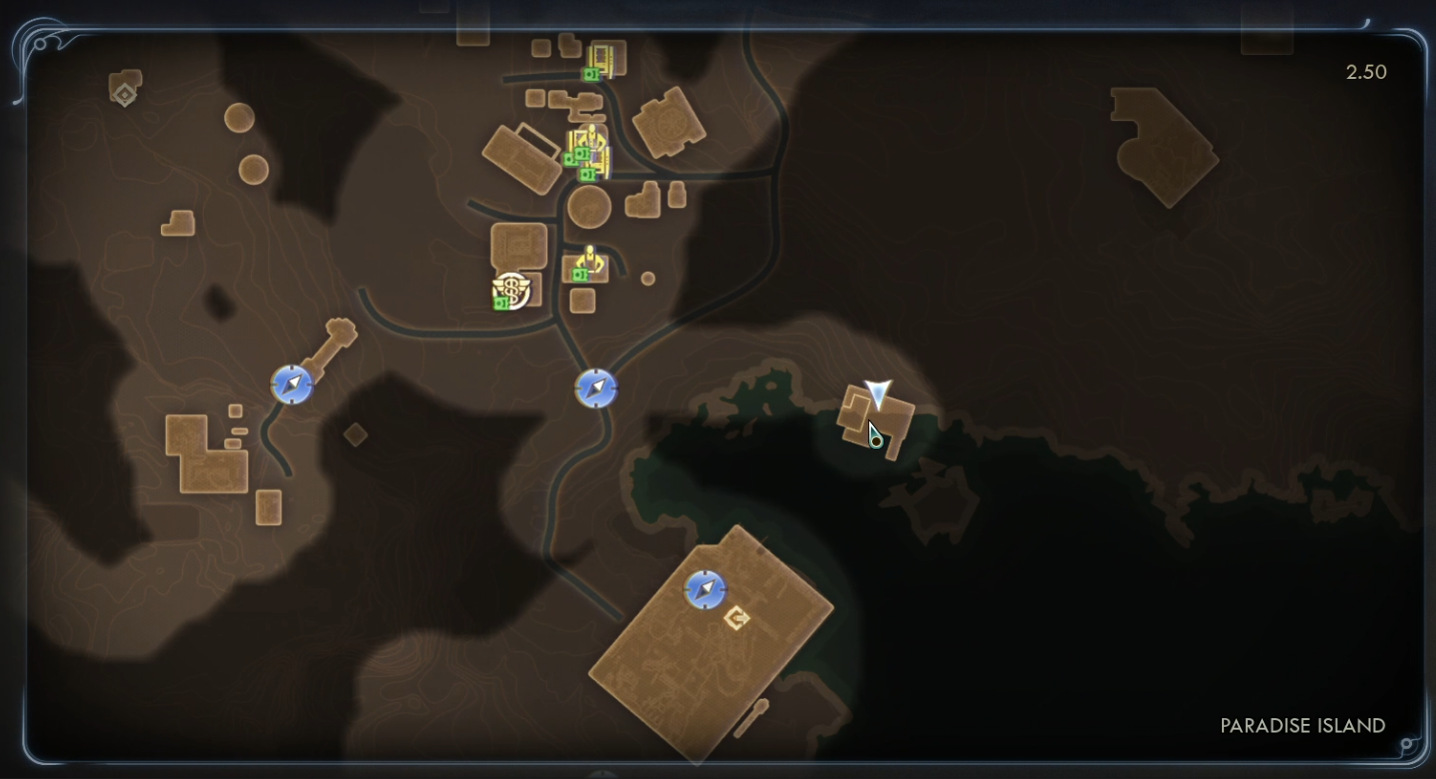 Volume 2 is on the southernmost edge of Paradise Island, on the front porch of a house on a pier.