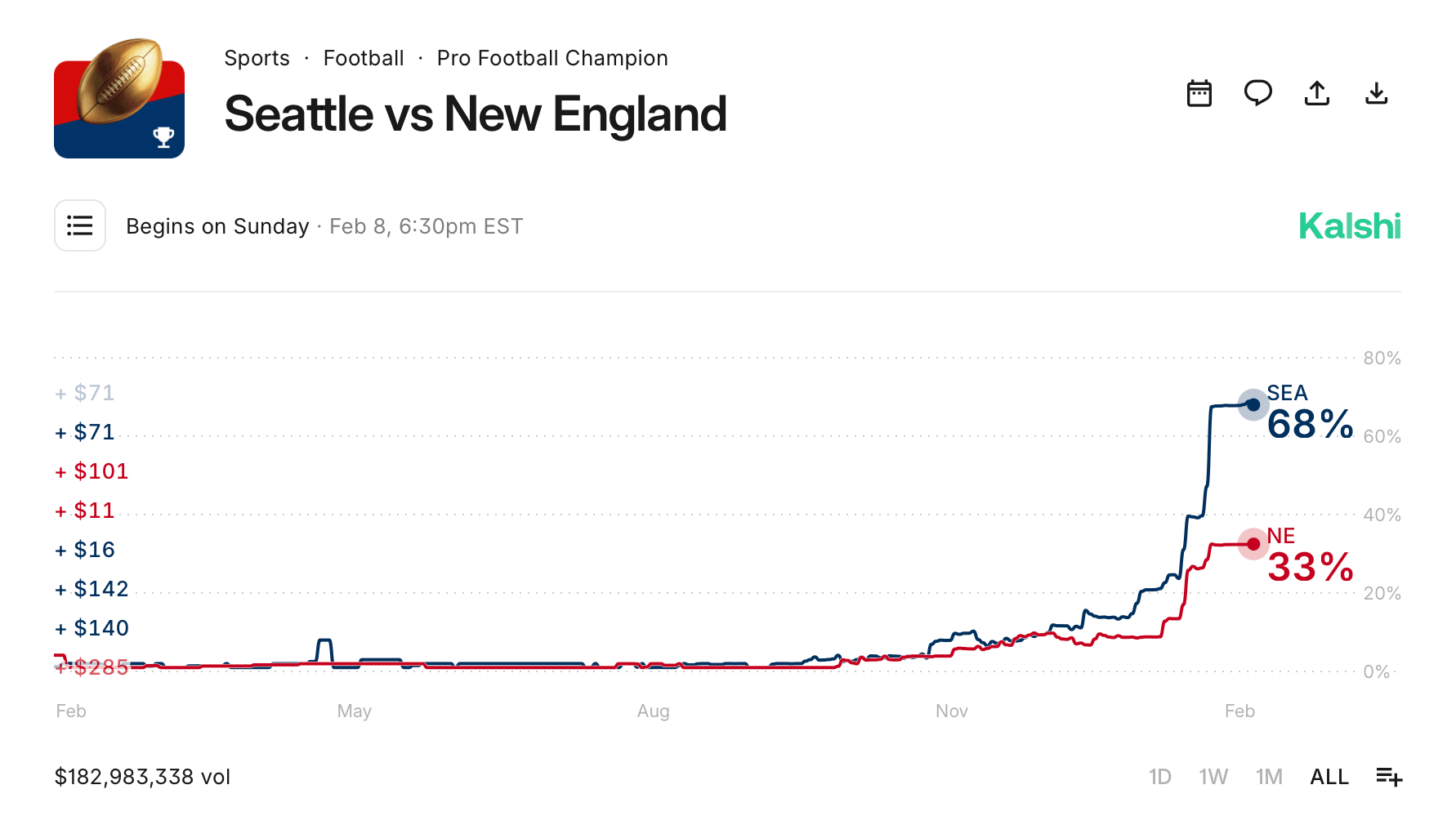 Kalshi, Polymarket, and Myriad Agree: Patriots Face Long Odds on Super Bowl Sunday