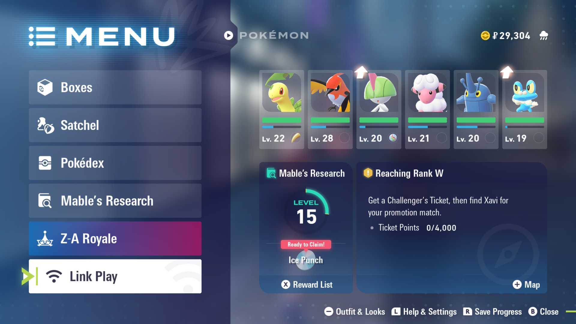 To get a Mystery Gift, open the game’s menu by pressing the X button, then choose “Link Play.” You’ll find the “Mystery Gift” option on the right side of the screen.