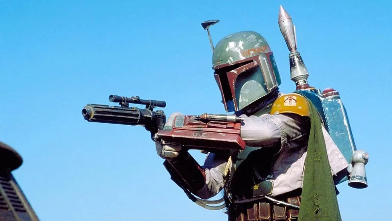 During the skiff scene, Boba Fett’s blaster visibly bends when it strikes the deck and quickly returns to its original shape as he moves. The prop gun was made of a slightly flexible material, which is most noticeable when Han Solo stumbles around while still regaining his sight. The bend in the blaster’s barrel is brief, but very apparent if you’re looking for it.