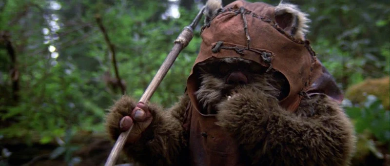 During the battle on the forest moon of Endor, a scene shows an Ewok seemingly bending a spear while fighting a stormtrooper. This was actually a special effect used to ensure the safety of the actors during the stunt. If you watch closely, you can see the spear flex as the stormtrooper falls, and it returns to its normal shape after the action.