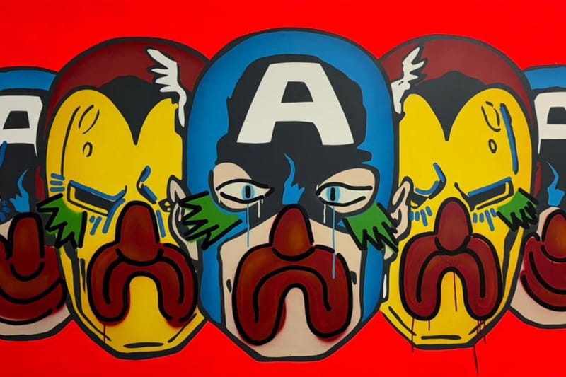 This new suite of collaborative works delve into the artists’s shared fantasy to become real-life superheroes, all while wrestling with histories as self-perceived villains through pasts marked by hardship, violence and addiction. Wood-panel works capture the likes of Iron Man, Captain America, Snow White and the Mad Hatter, counterbalanced between Opake’s graphic compositional approach and tear-streaked, cartoonish spray work, a Slawn signature.