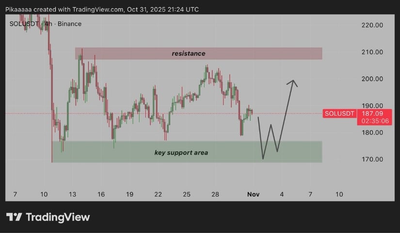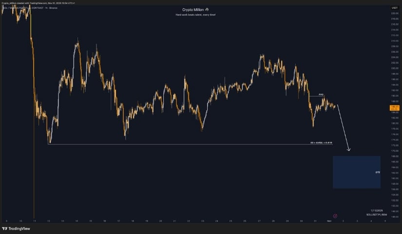 Crypto Million, a name that screams “I made this in 10 minutes,” warns that if $185 breaks, Solana might slide toward $170 like a sledding hill for crypto. The price action looks like a toddler’s drawing of a stock chart-messy, chaotic, and slightly terrifying. A breakdown here would be the crypto version of a midlife crisis. Not pretty.